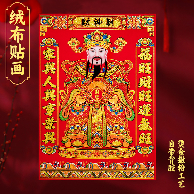 新款财神爷过年家用财神画财神贴纸背胶财神年画装饰春节用品批发