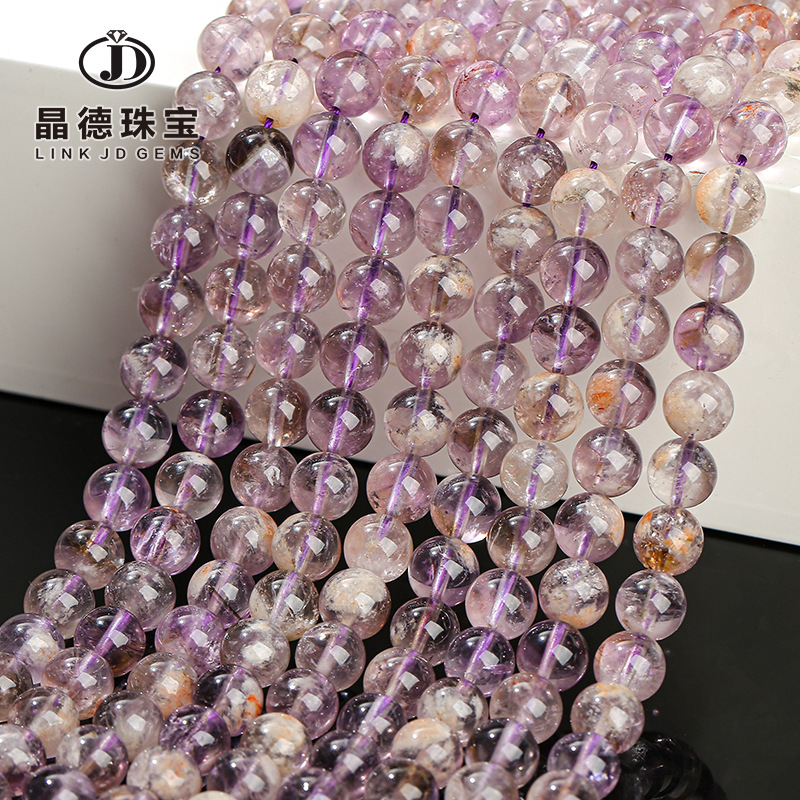 晶德珠宝 天然阿赛紫水晶散珠爆花幽灵水晶圆珠diy饰品配件珠批发