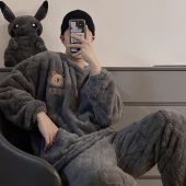 新款男士睡衣秋冬季珊瑚绒加厚加绒保暖家居服青少年睡衣外穿套装
