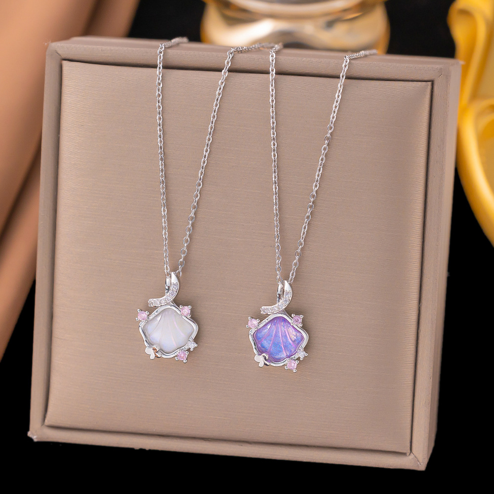 新款紫色炫彩贝壳项链女高级感小众设计ins风微镶精致钛钢锁骨链