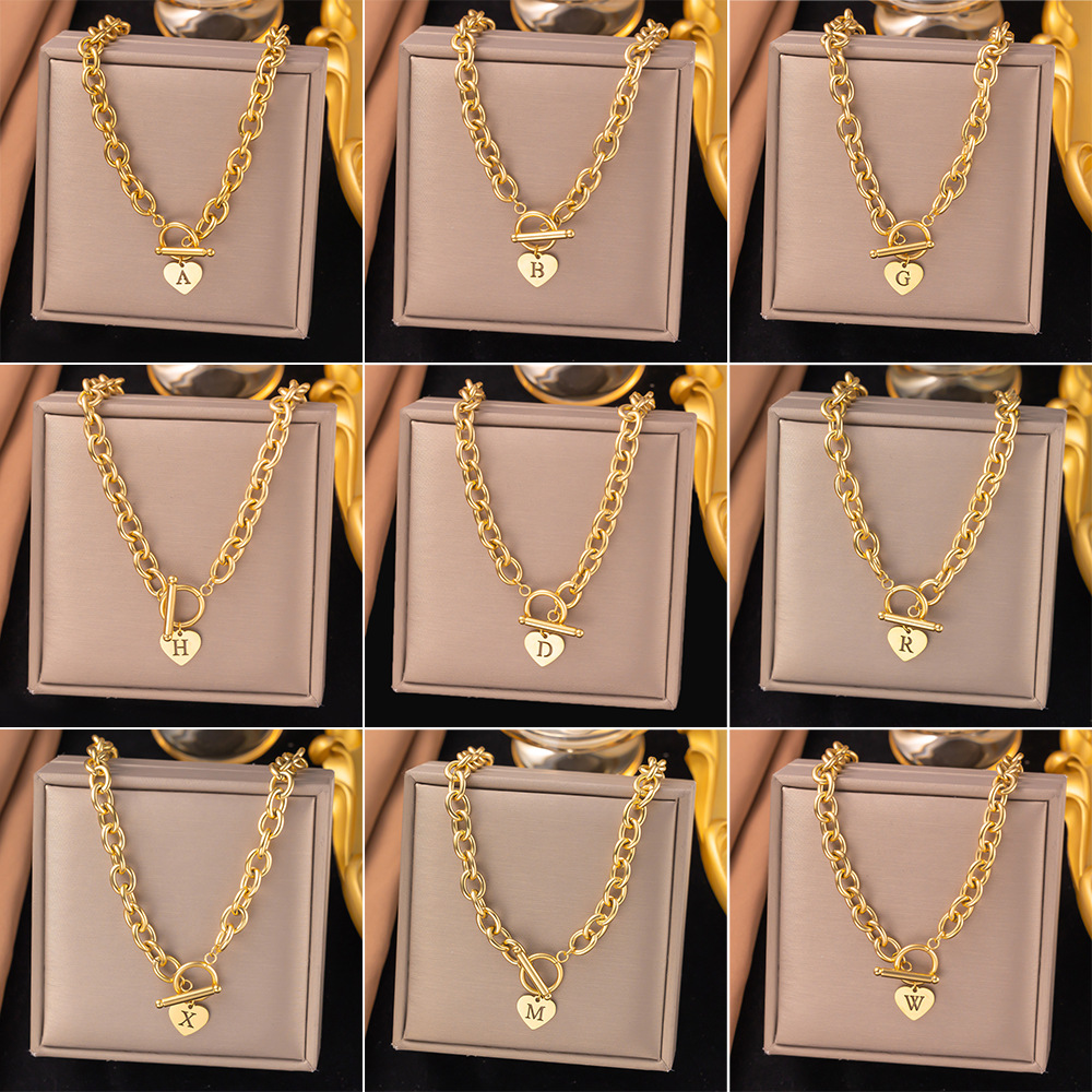 欧美新款ins风锁骨链 潮流嘻哈个性OT扣桃心吊坠不锈钢项链饰品女