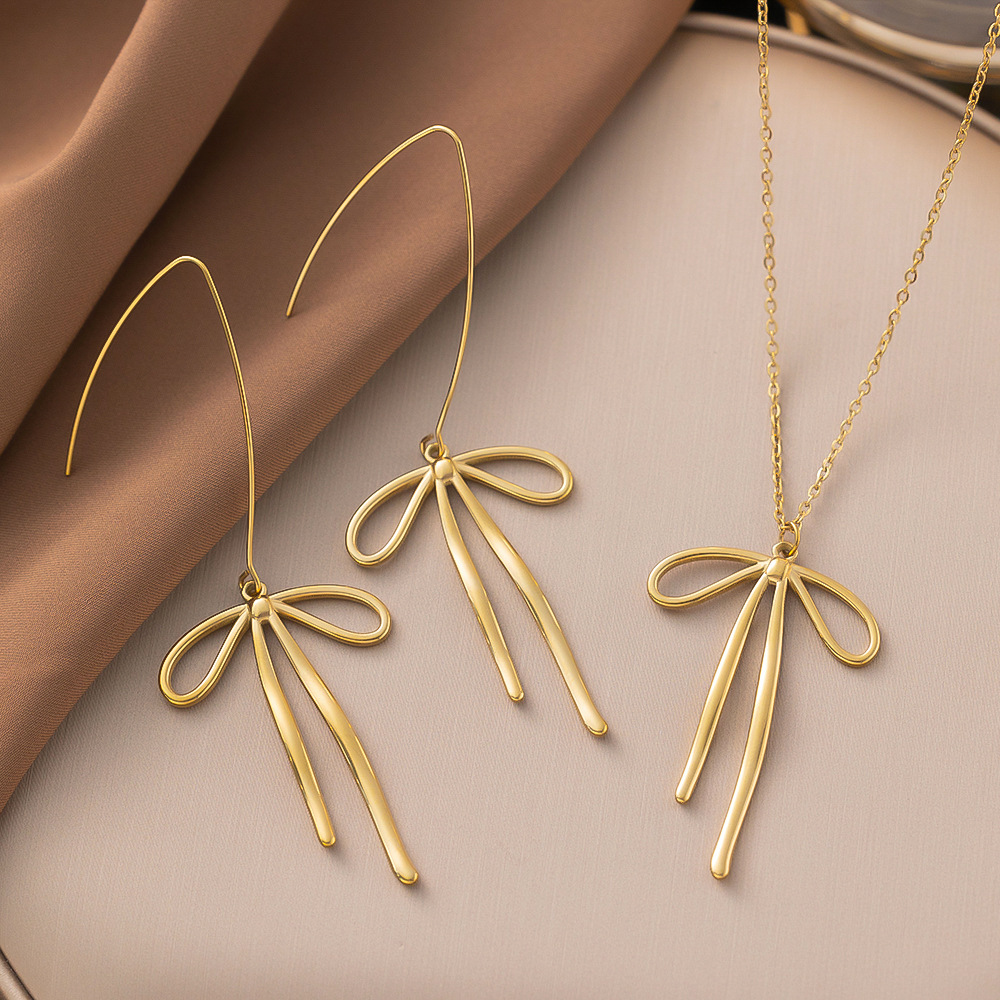 复古镀金钛钢蝴蝶结耳环 简约不锈钢耳环百搭设计感女时尚日韩风
