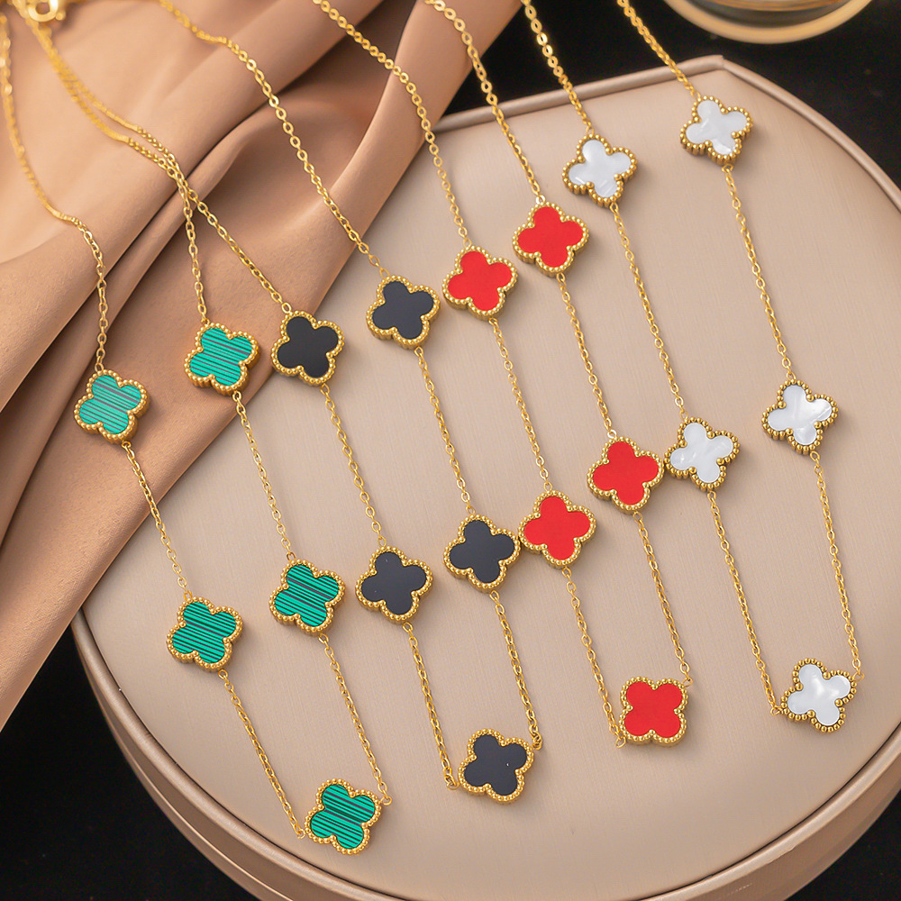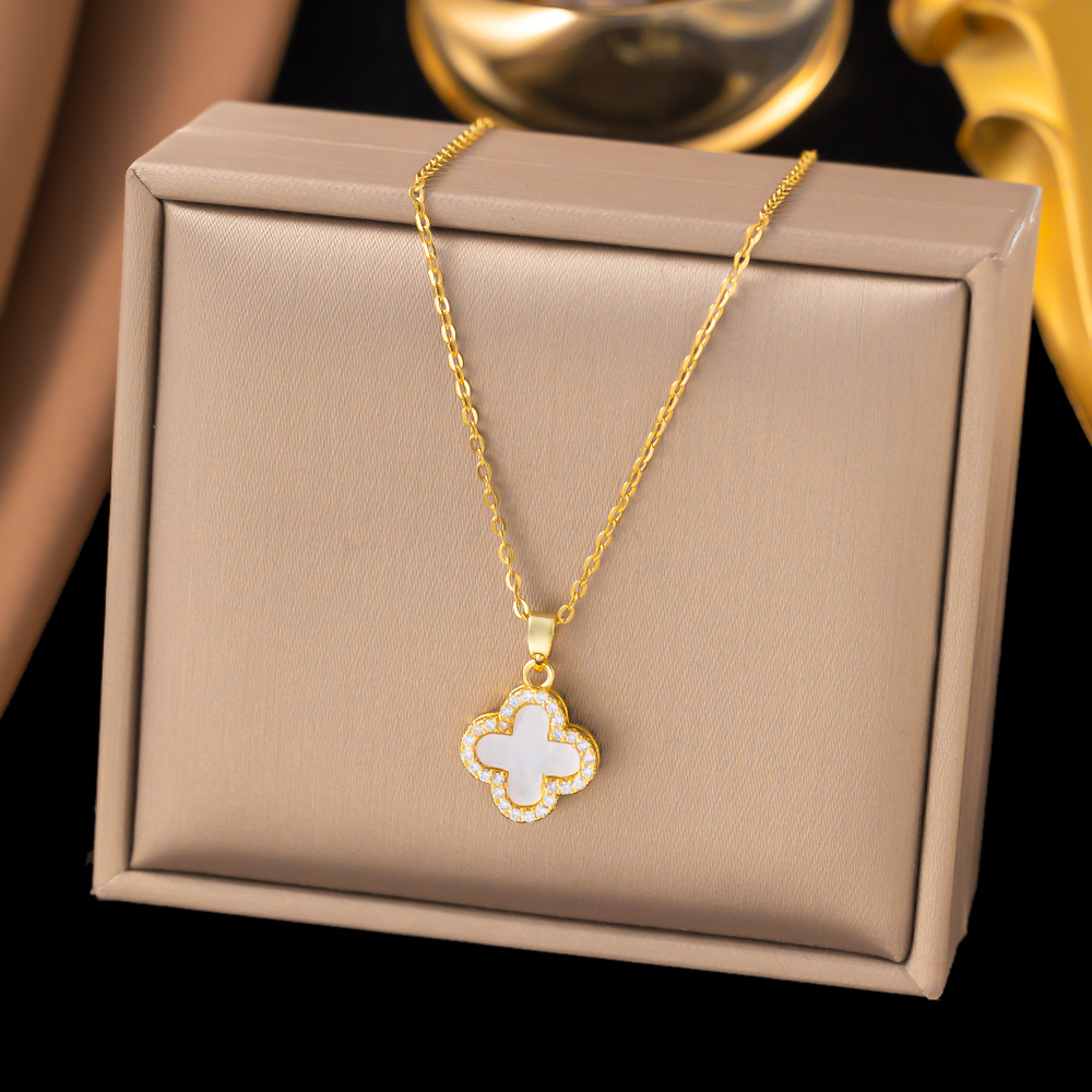 跨境轻奢小众女款新款爆款高级感锁骨配饰吊坠幸运四叶草钛钢项链