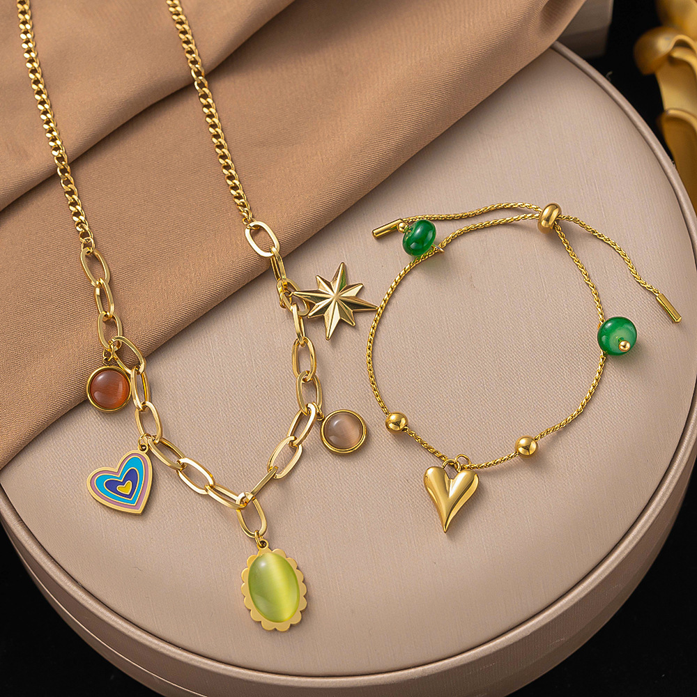 欧美热销圆珠玛瑙几何元素吊坠手链小众设计感镀18k金爱心手饰女