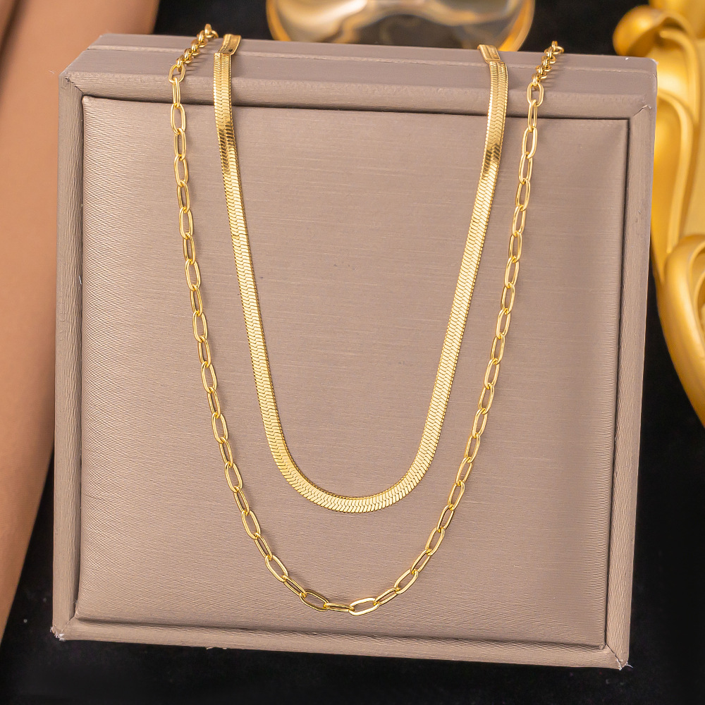 欧美风经典简约蛇骨项链不锈钢18K镀金刀片链扁蛇链双层项饰女