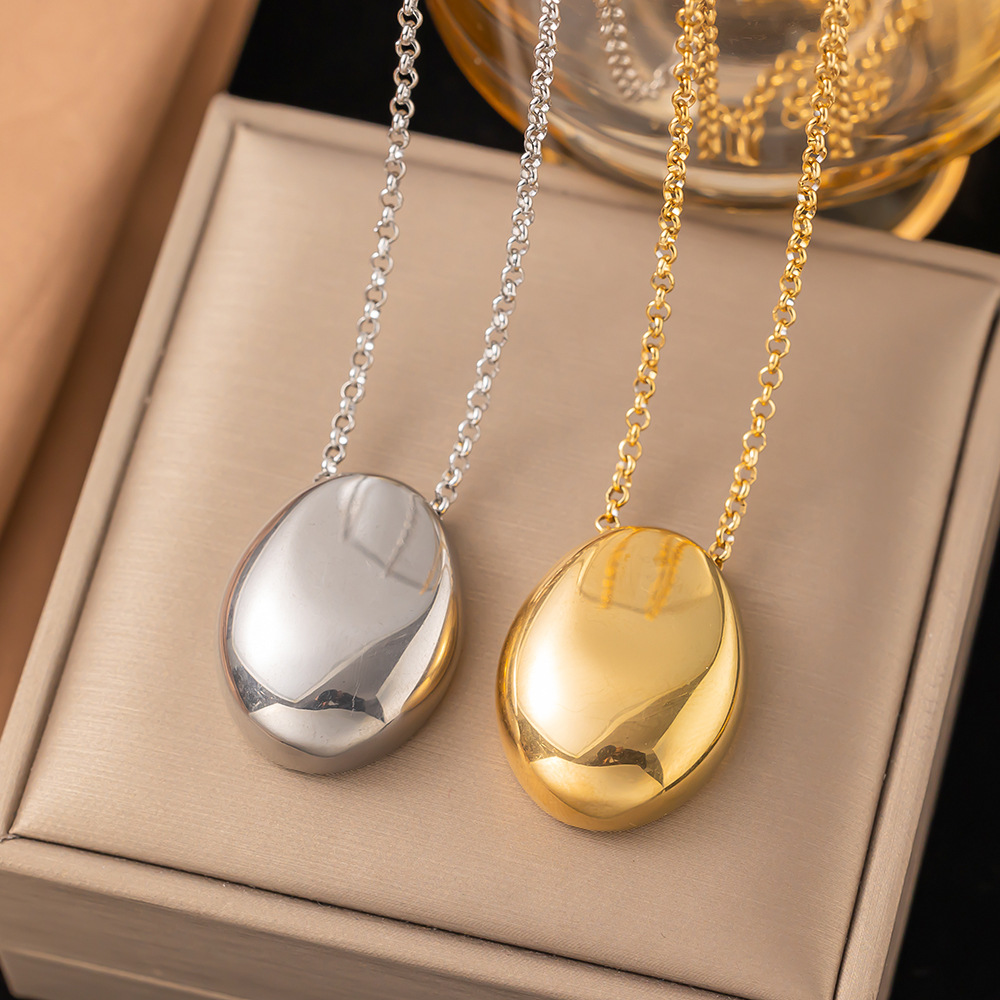 欧美跨境高级感金银色椭圆钛钢长款项链简约时尚中性风毛衣链配饰