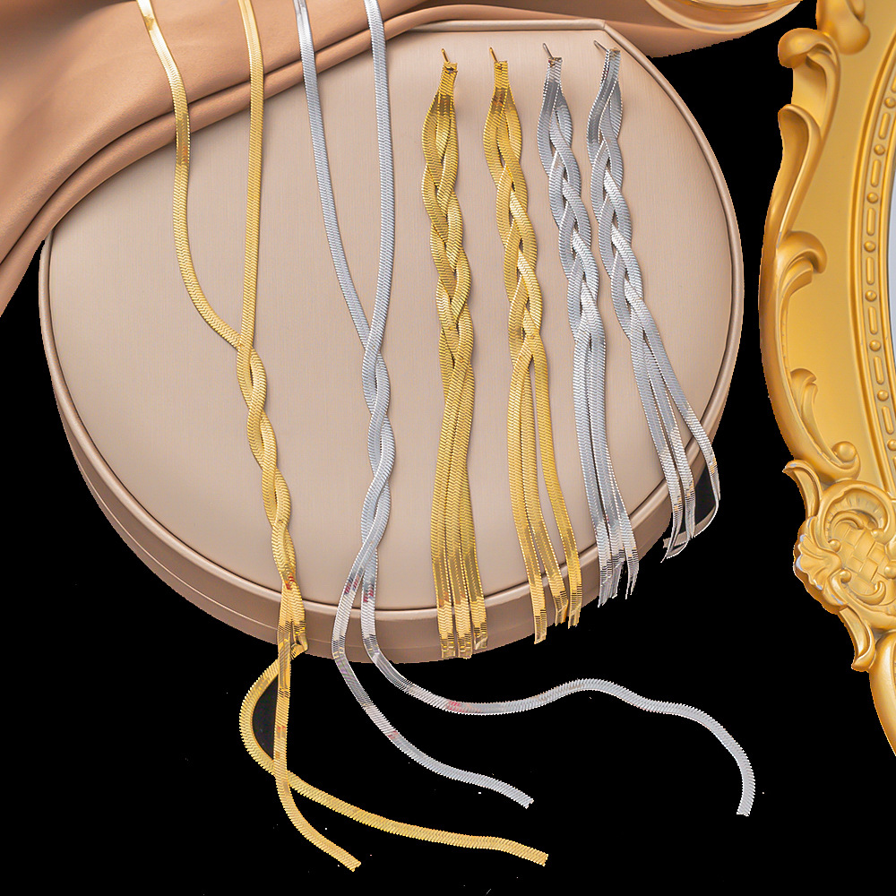 欧美跨境网红同款刀片链扁蛇链麻花链双层项链时尚设计感项链批发