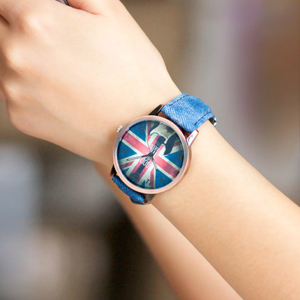 HIIN韩国时尚腕表皮带潮流女表时装学生表 英伦牛仔石英手表