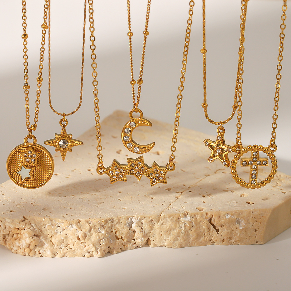 欧美轻奢时尚设计镶锆石项链18K金不锈钢星星月亮吊坠高级感项饰