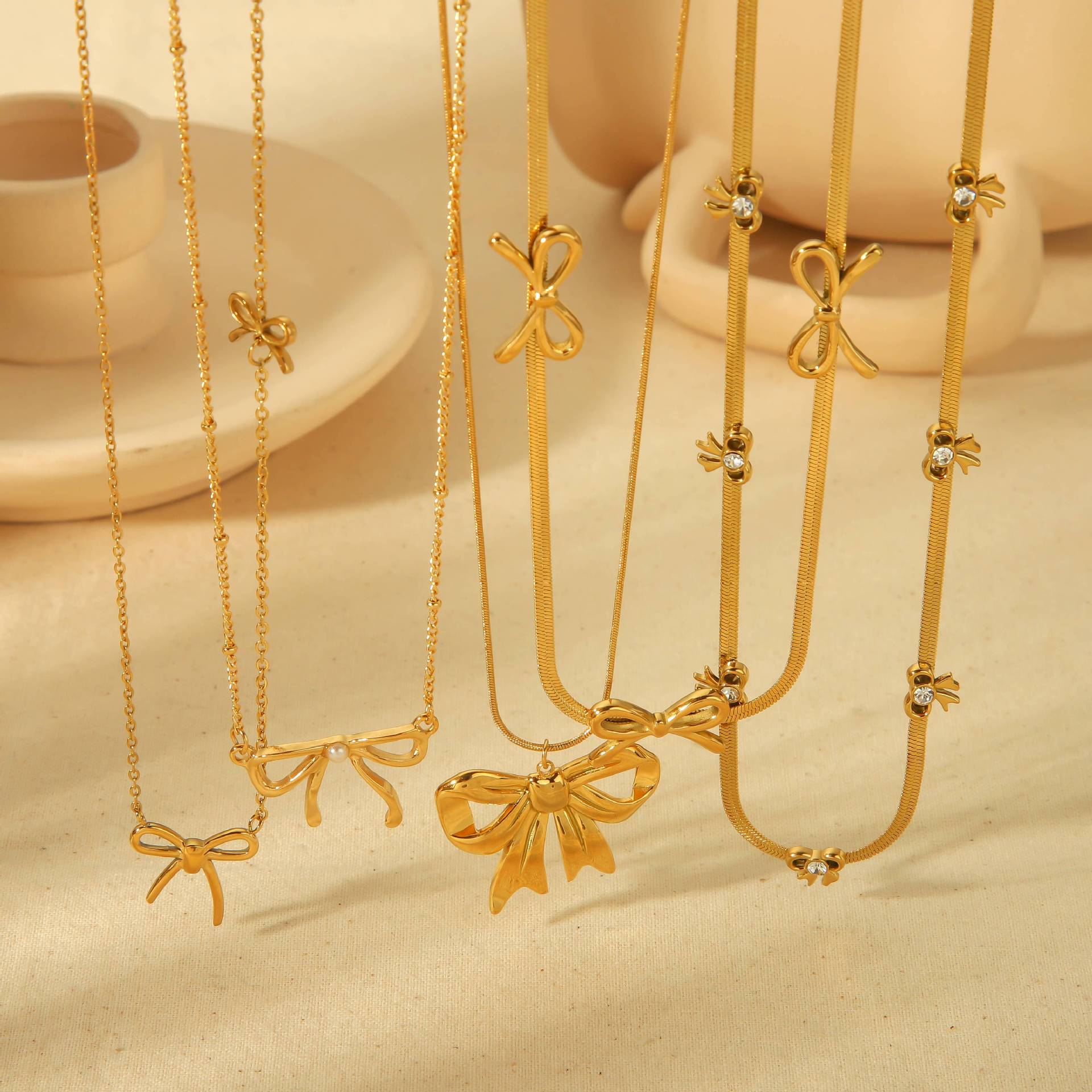 INS风跨境设计款不锈钢蝴蝶结项链时尚百搭高级感18k金不掉色