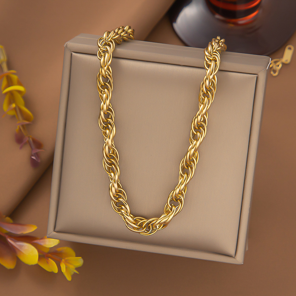 欧美跨境批发速卖通爆款时百搭双层缠绕龙骨链不锈钢项链女不掉色