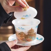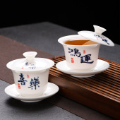 白瓷素烧冰种玉瓷盖碗羊脂玉茶杯薄胎功夫泡茶碗带盖陶瓷堆金茶碗