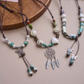 民族风景德镇陶瓷项链高级感文艺羽毛饰品批发国风元素新中式项饰