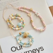 新款糖果色卡通小熊手机链diy手机壳挂链挂绳方形格子陶瓷手机链