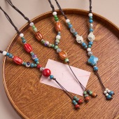 新中式民族风陶瓷毛衣链女古风挂饰文艺中国风蝴蝶配饰项链女批发