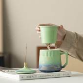 故宫文创粗陶国潮茶杯茶水分离办公室茶杯个人专用带盖泡茶水杯伴