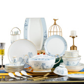 景德镇欧式家用碗具全套 春之意新款陶瓷碗碟盘子套装骨瓷碗筷DIY