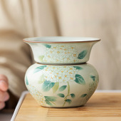 绣球花汝瓷茶滤陶瓷茶漏茶隔茶叶茶渣过滤一体打孔汝窑功夫滤茶器