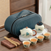 汝窑旅行套装陶瓷快客杯便携一壶四杯公司商务伴手礼品节定制logo