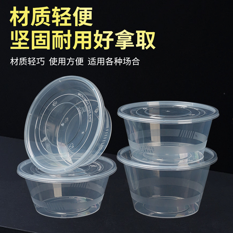 加厚一次性圆形透明餐盒食品级PP微波加热冷藏外卖盒餐饮包装盒