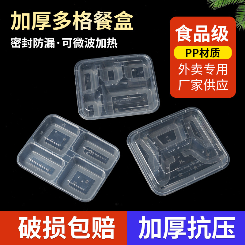一次性餐盒加厚透明四分格带盖快餐盒微波加热冷藏食品级批发定制