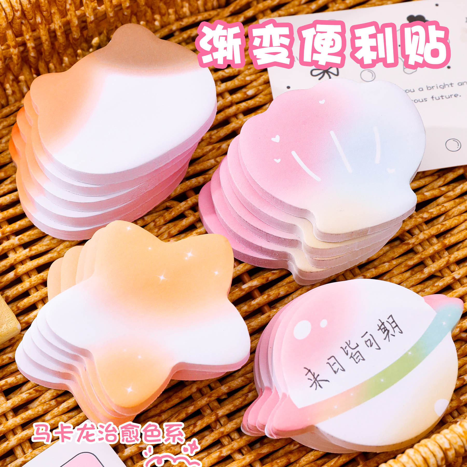 可爱异型渐变便利贴 学生留言记事便签纸可撕粘性强N次贴学习文具