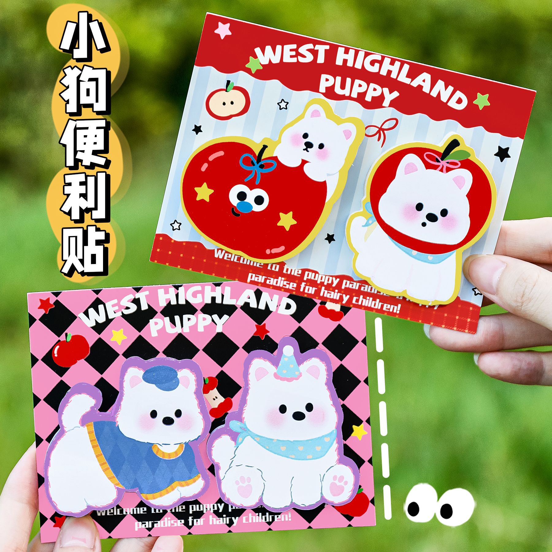 ins可爱西高地双枚便利贴学生高颜值手账装饰便签贴留言记事N次贴