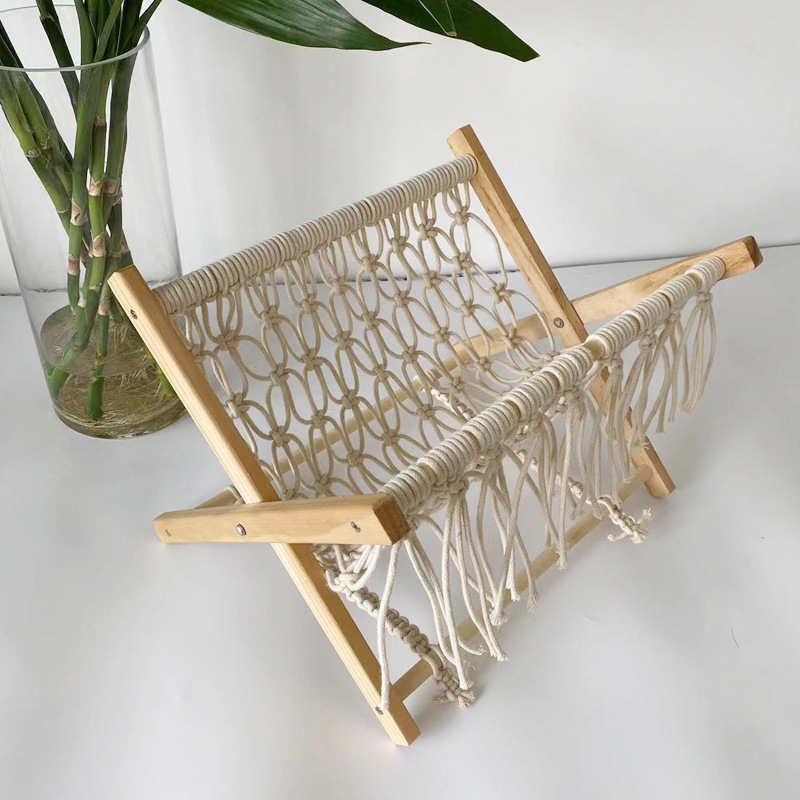 北欧棉绳编织收纳架折叠杂志架创意桌面书报架落地置物架拍照道具