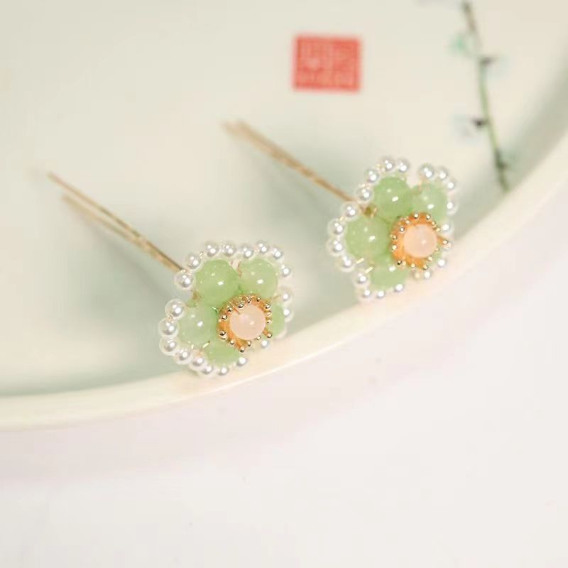 古风仿珍珠花朵发钗汉服明制唐风宫廷点缀掩鬓小钗日常盘发U型簪