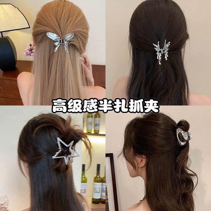 冷淡风金属蝴蝶小号盘发夹鲨鱼夹异形抓夹半扎神器发卡后脑勺头饰