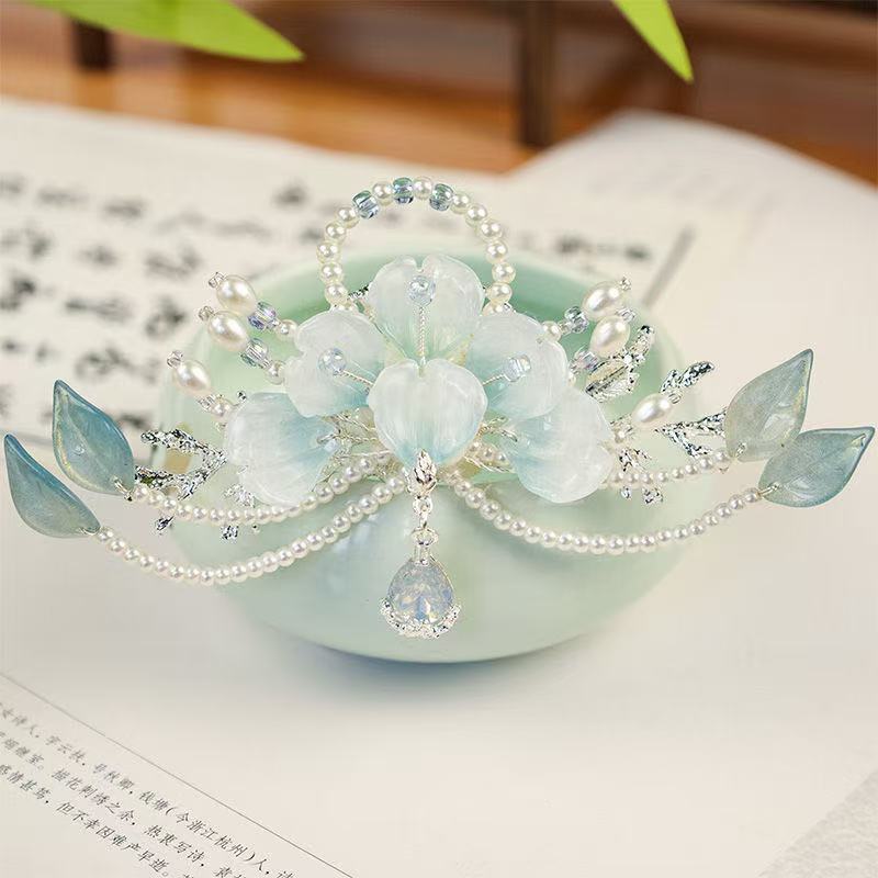 超仙清冷头冠国风发冠新中式古风汉服头饰牡丹花仙气妆造写真配饰
