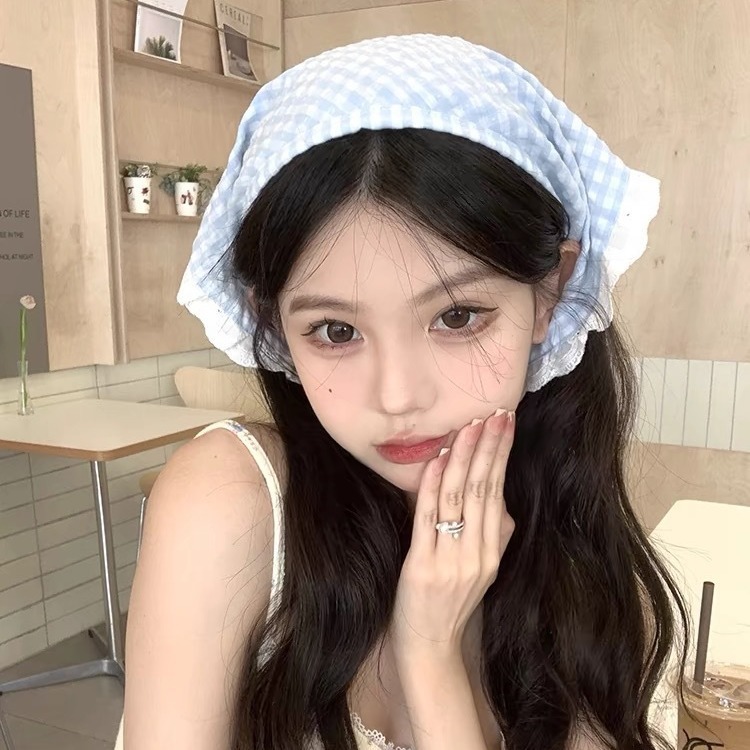 【蜜桃茶】韩妹超爱~夏天的蓝色头巾出游海边度假田园三角巾头饰