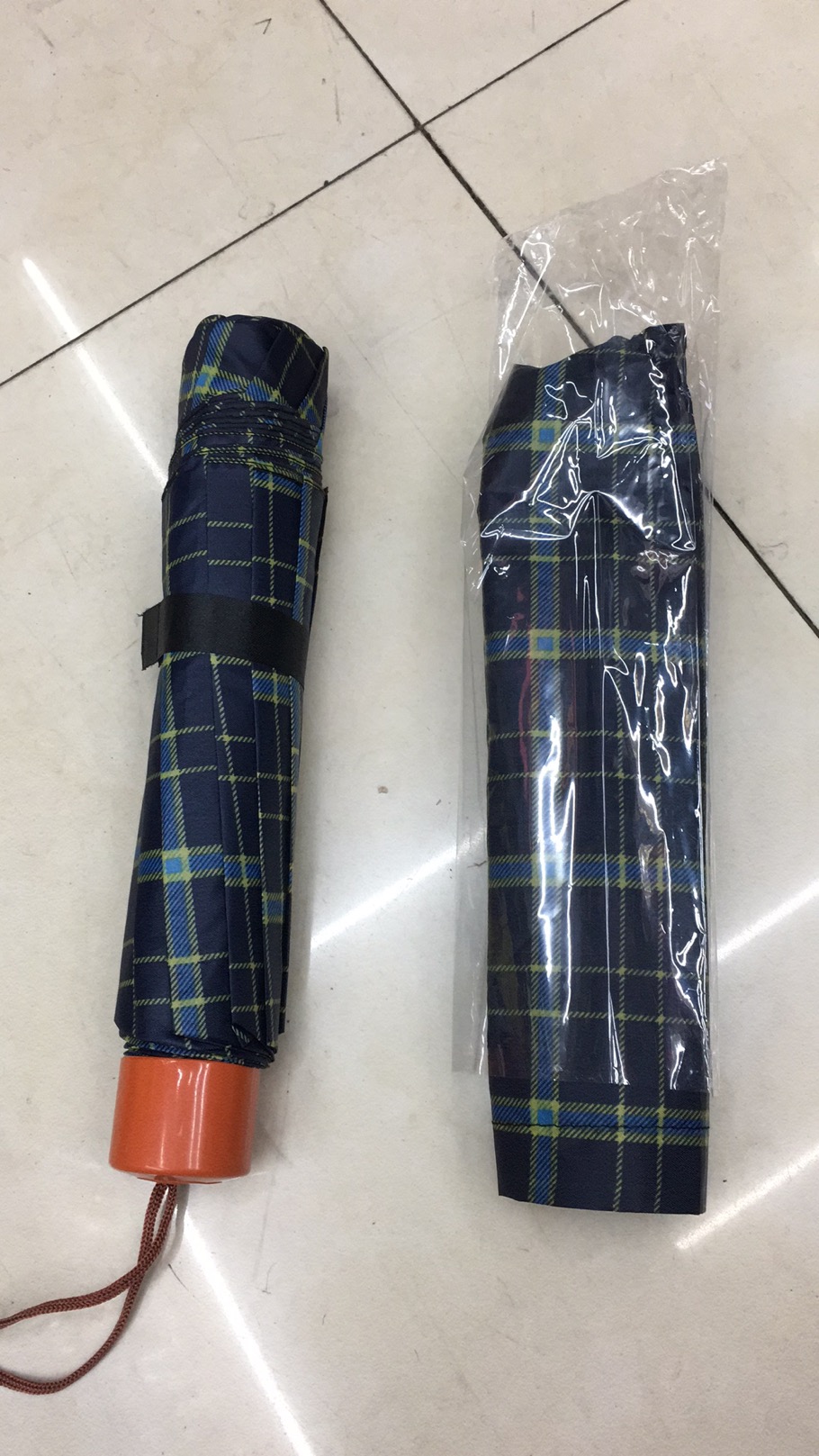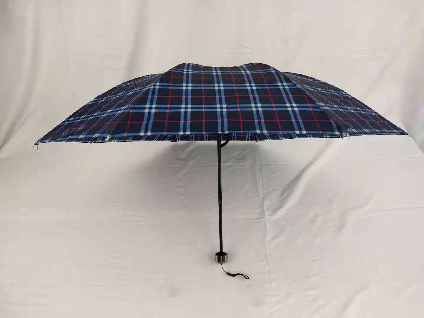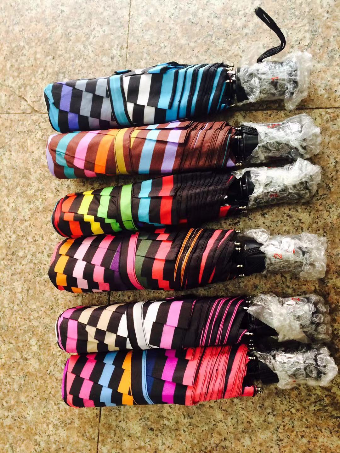 55cm8骨三折格子全新低价批发晴雨伞无纺布套吊卡混超市外贸特供