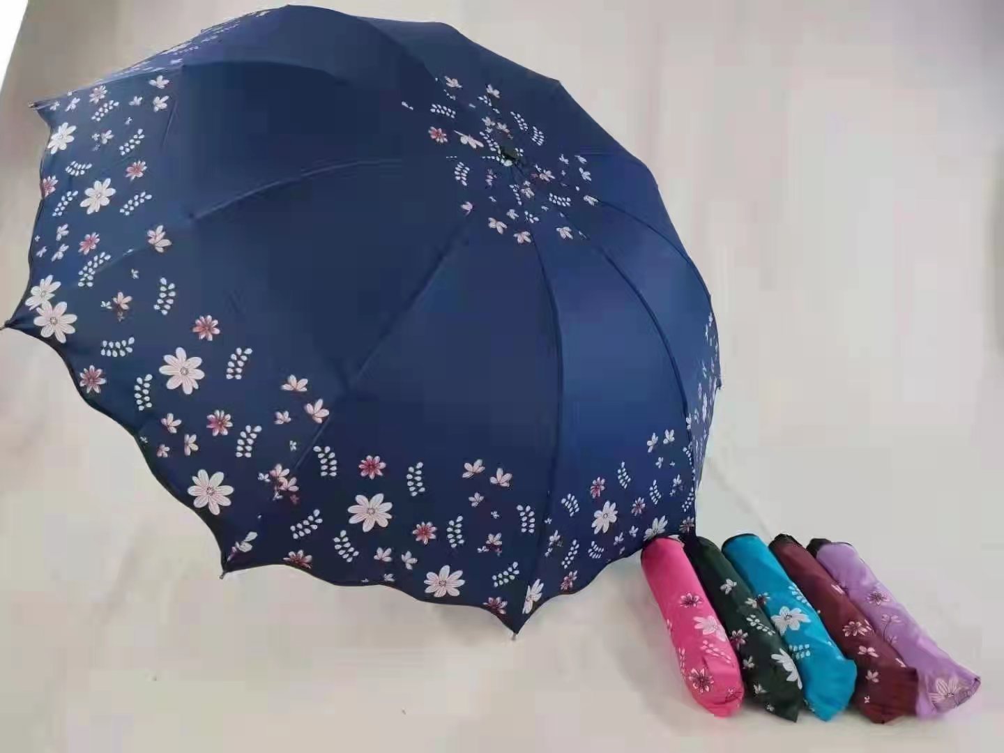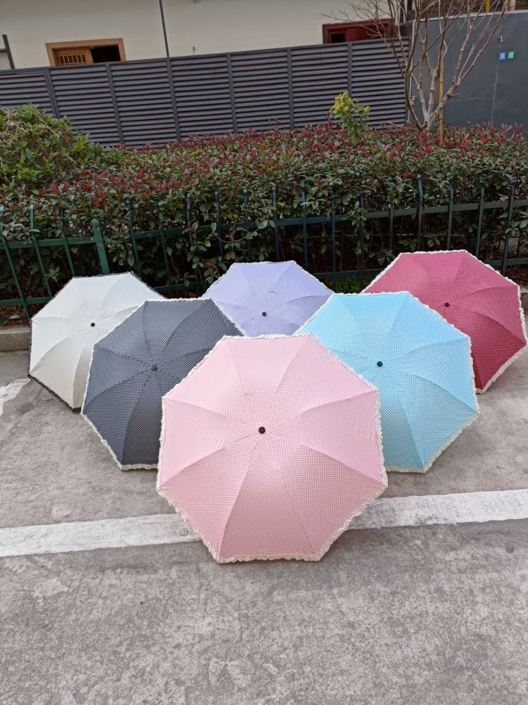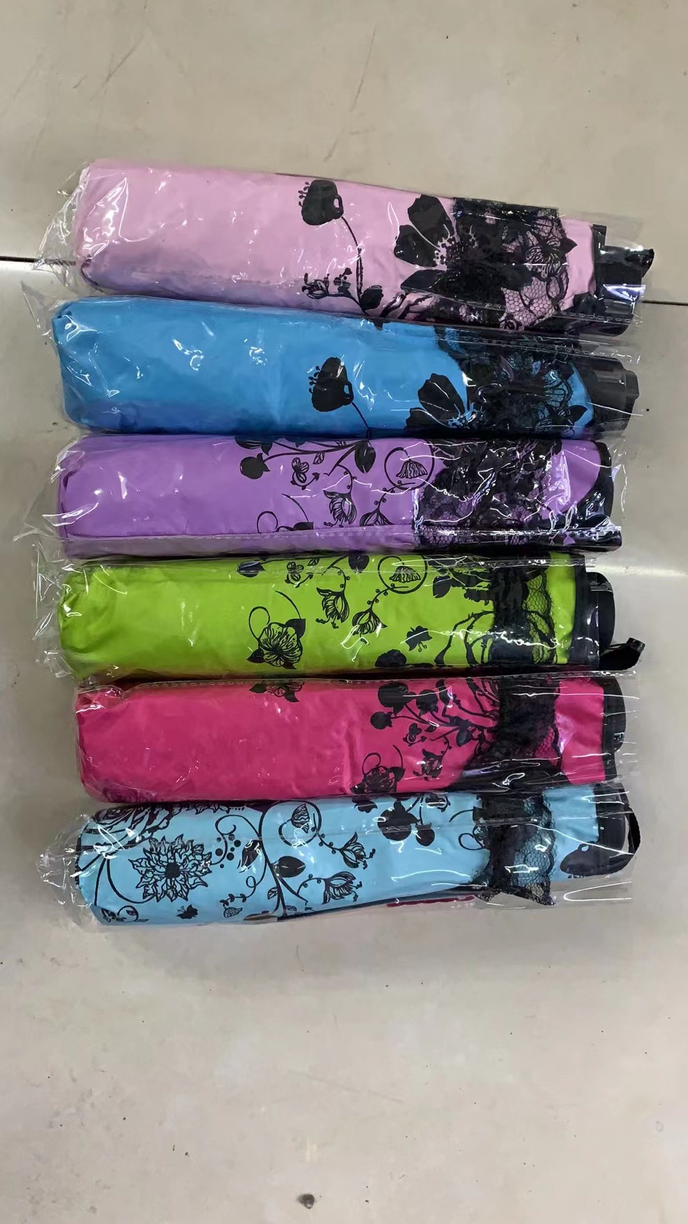 三折65公分10骨黑胶花荷叶边晴雨伞防紫外线防雨厂家直销低价批发