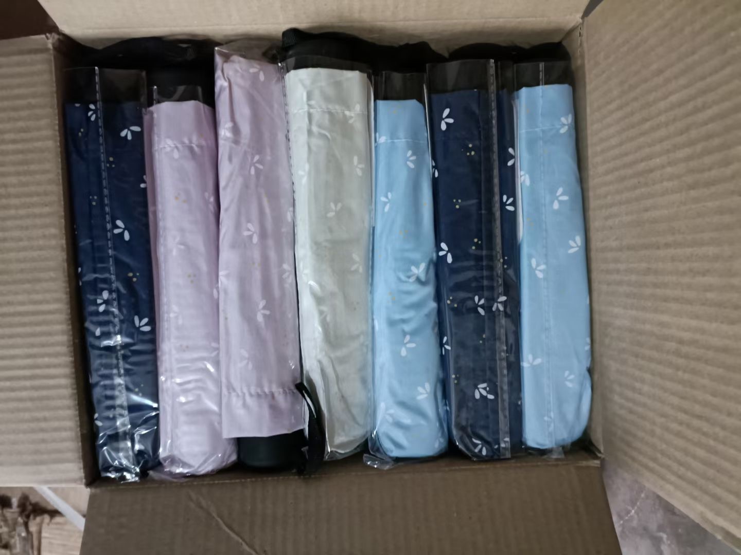 三折黑胶杂色伞防晒防雨太阳伞加粗四节杆全新库存低价处理带内盒