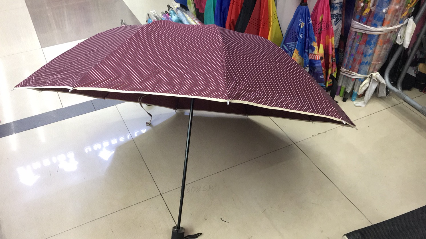 三折65公分10骨碰击圆点包边晴雨两用全新库存低价处理超大加固型