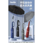 60公分10骨双纤维骨全自动黑胶素色环扣柄晴雨伞防晒防雨厂家直销