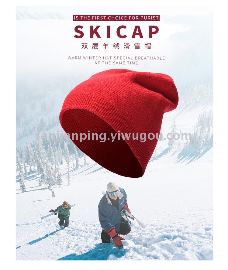 秋冬季户外滑雪帽双层羊绒运动帽加厚套头针织帽男女保暖登山帽子