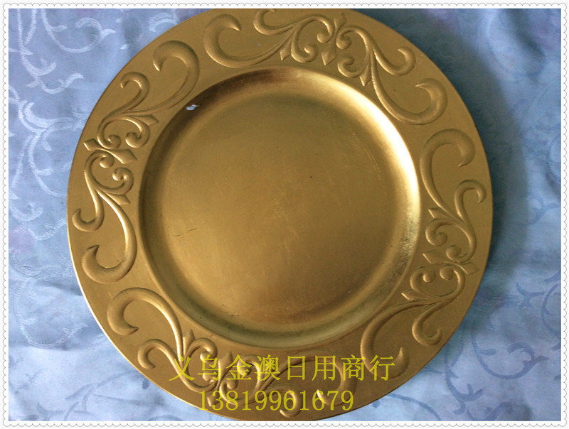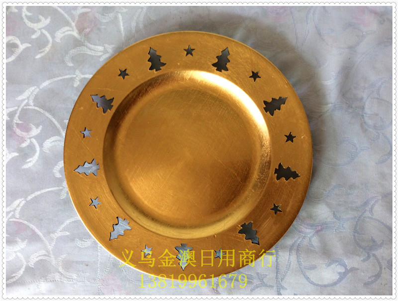 盘子 圣诞盘,塑料盘,餐位盘,托盘,底盘,装饰盘 金盘 J20
