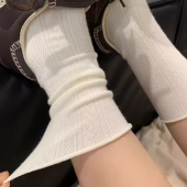 袜子女黑白秋ins潮复古奶油系卷边暗纹中筒堆堆袜透气文艺月子袜