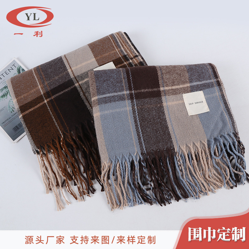 2021秋冬新款时尚英伦格子男士仿羊绒围巾流苏情侣款亲子围脖批发