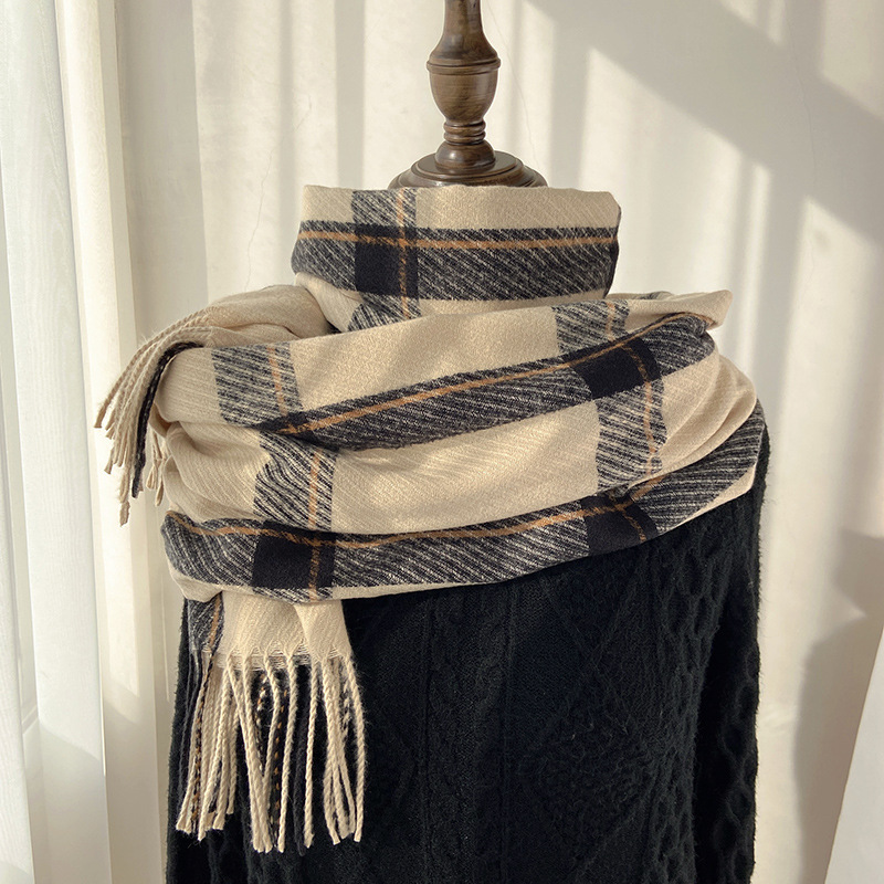 2021秋冬韩版格子围巾女时尚气质仿羊绒长巾名媛装饰流苏披肩批发