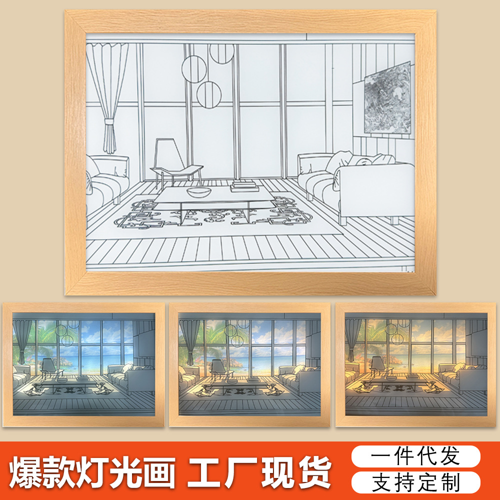 三色调光抖音灯光画跨境亚马逊客厅房间卧室阳光小夜灯装饰挂画灯