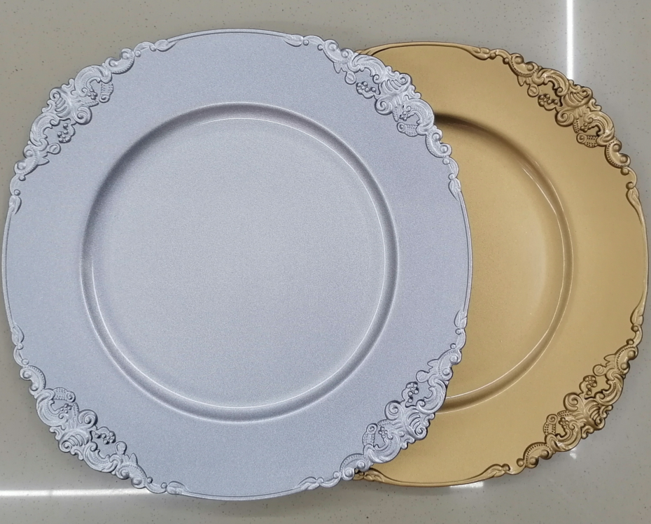 Charger Plates塑料装饰盘子 婚庆婚礼酒店派对塑料盘子 厂家批发
