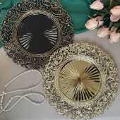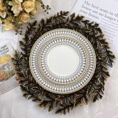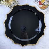 黑金仿古节日西餐盘金珠装饰盘子 charger plate派对塑料轻奢托盘