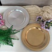 高级珠边盘金银色外贸charger plates 婚礼派对晚宴 充电板