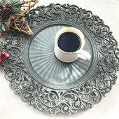 复古雕花盘charger plates创意西餐厅咖啡水果托盘派对酒店垫盘