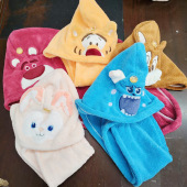 卡通珊瑚绒浴巾套装吸水柔软加厚檫头速干纯棉毛巾吸水干发帽浴巾