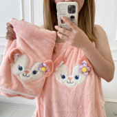库洛米浴巾可穿可裹浴袍珊瑚绒干发帽发带三件套柔软亲肤卡通浴裙