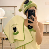 可爱猫咪珊瑚绒毛巾浴巾干发帽浴裙家用柔软吸水速干可裹浴袍裹巾